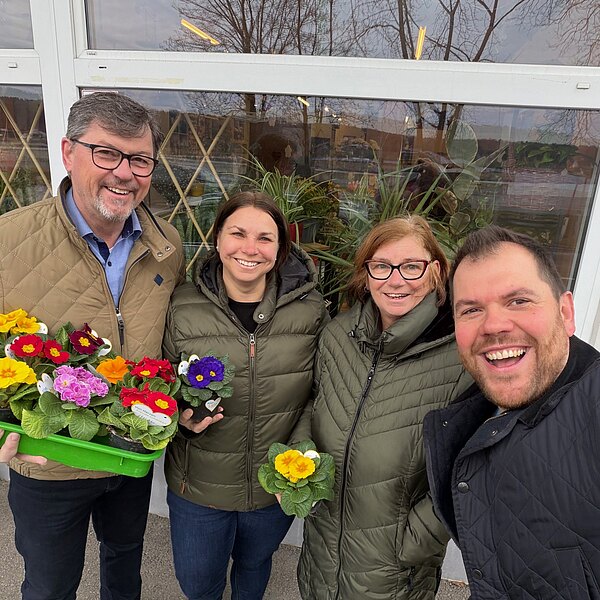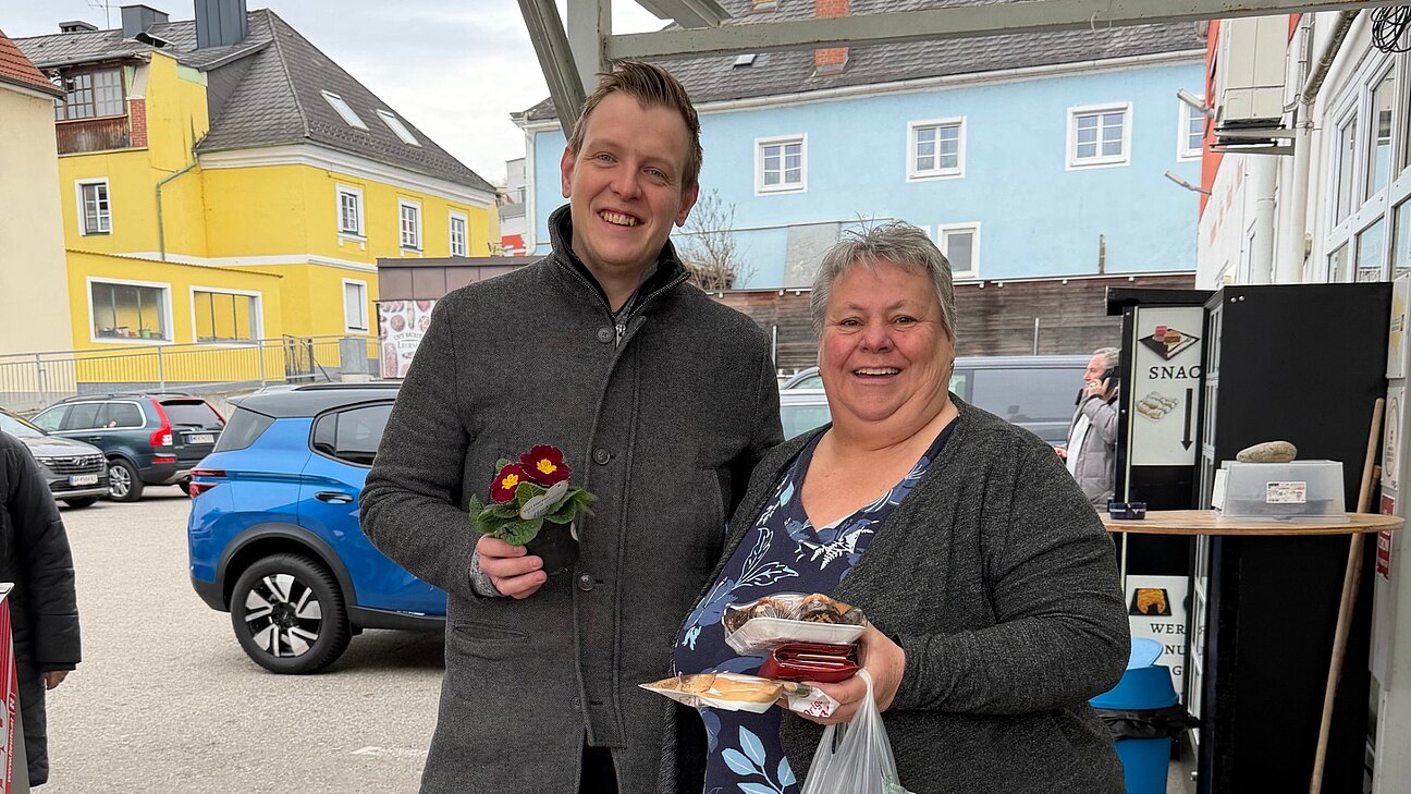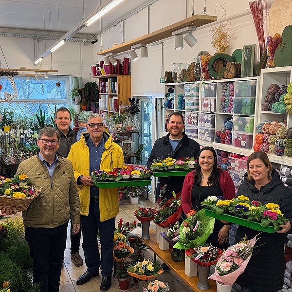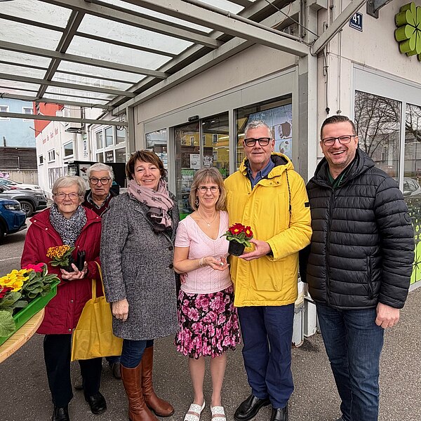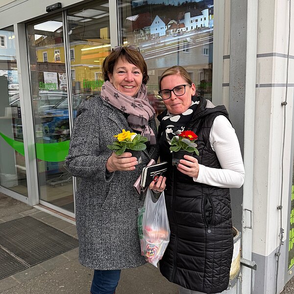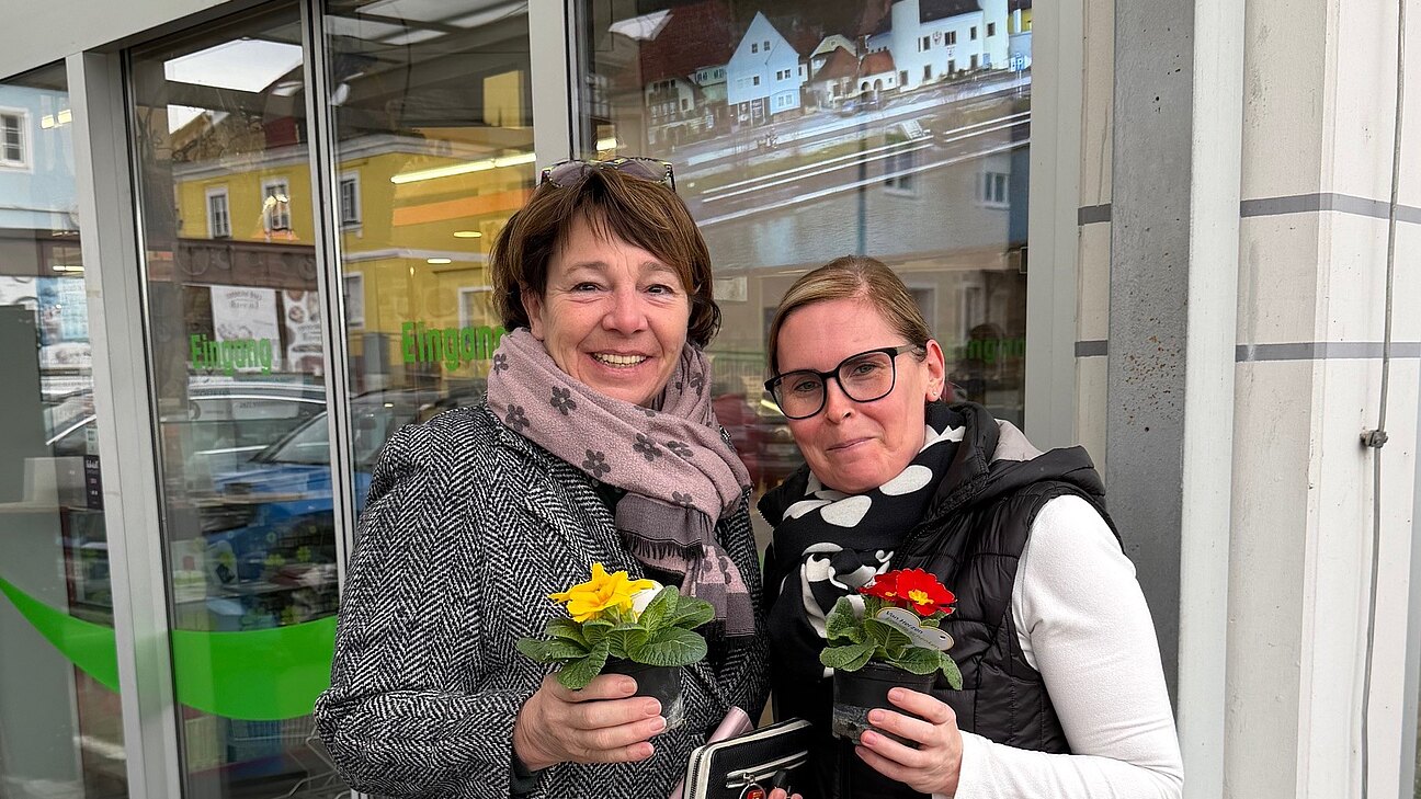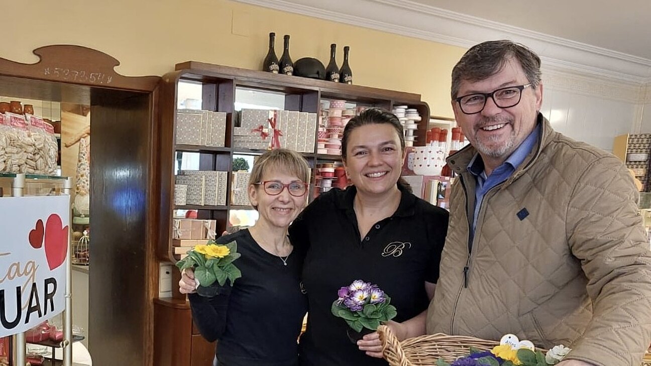 Am Valentinstag haben wir Primeln von Blumen Iris in der Marktstraße verteilt.