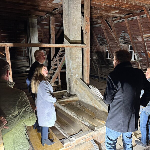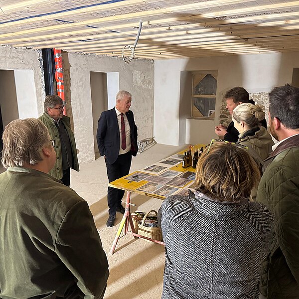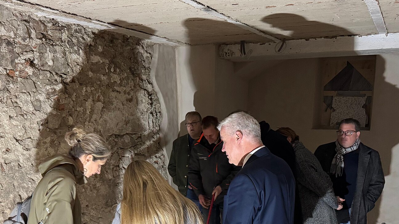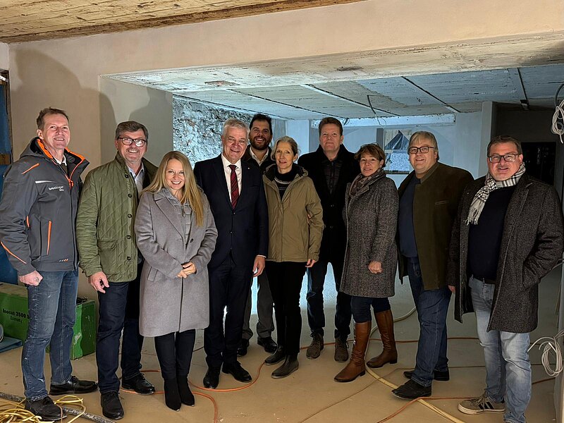Der Rundgang zeigte eindrucksvoll, wie weit die Arbeiten bereits fortgeschritten sind. Besonders hervorzuheben sind die einzigartigen mittelalterlichen Fundamente, die erst vor wenigen Wochen im Innenbereich zum Vorschein gekommen waren. Diese wurden – in enger Zusammenarbeit mit dem Bundesdenkmalamt – fachgerecht wieder geschlossen und damit für kommende Generationen dauerhaft konserviert. Für die späteren Besucher bleiben jedoch „Sichtfenster in die Vergangenheit“, die diese besondere Entdeckung erlebbar machen.
